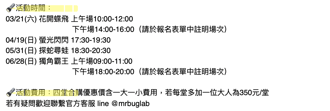 2. 戶外活動會由老師依據現場狀況更動路線或行程,如臨時有更動敬請見諒。